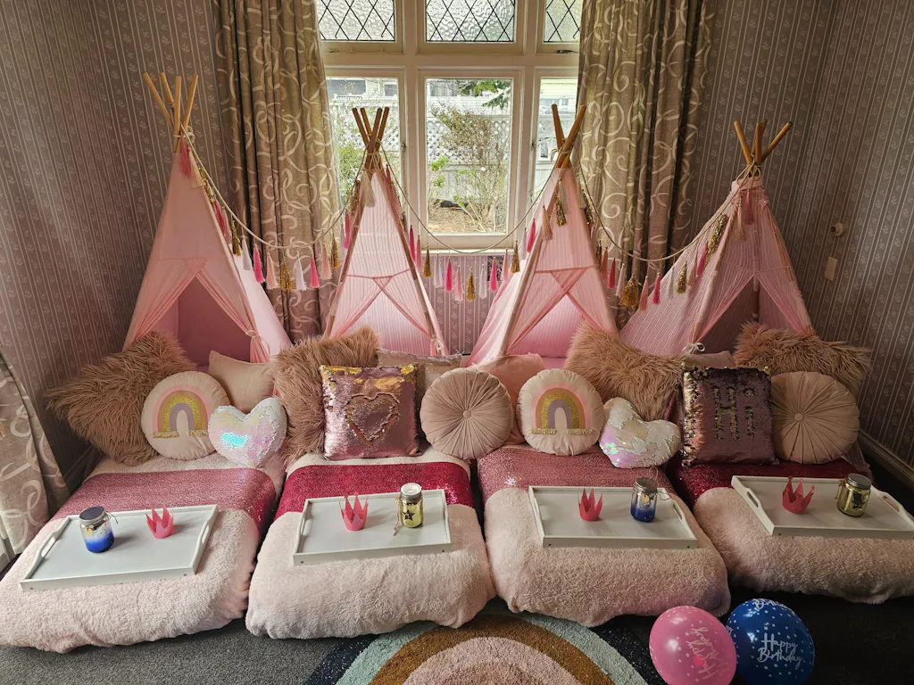 PRETTY IN PINK SLUMBER PARTY TEEPEE HIRE